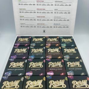 - Packaging: Authentic Persy Diamonds packaged in 3.5g or 28g (1 oz) jars with lids which are color-coded, most commonly in a premium Baller Box or Jar.